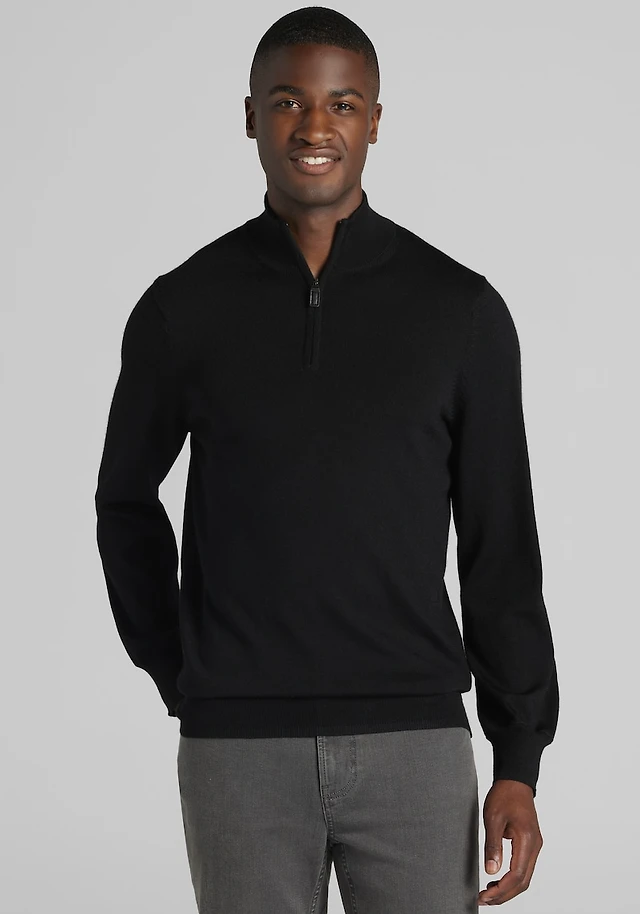 Men's Traveler® Collection Tailored Fit Merino Blend 1/4-Zip Sweater at Jos. A. Bank, Dark Green,