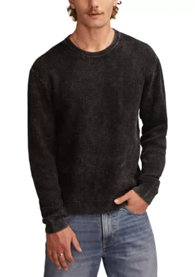 True Religion Logo Applique Long Sleeve Cable Knit Textured Fleece Lined Sweatshirt
