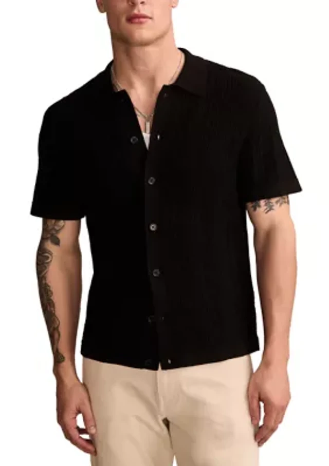 Rowm Outsider's Oasis Short Sleeve Jacquard Flower Button Front Sweater Knit Shirt