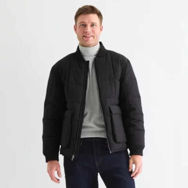 St. John's Bay Mens Water Resistant Midweight Bomber Puffer Jacket