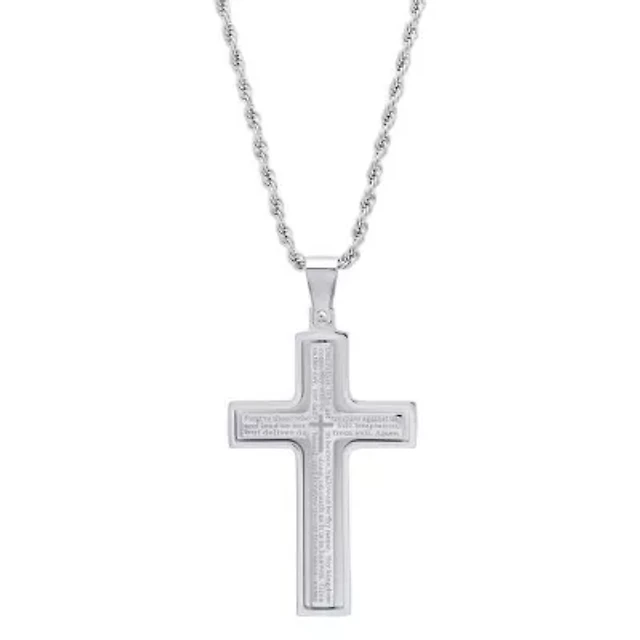 Mens Two-Tone Stainless Steel Cross Pendant Necklace