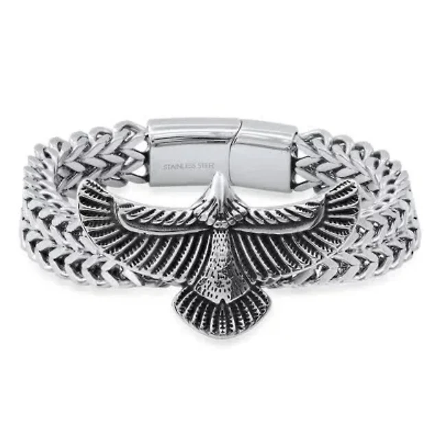 Mens Two-Tone Stainless Steel Eagle Pendant Necklace