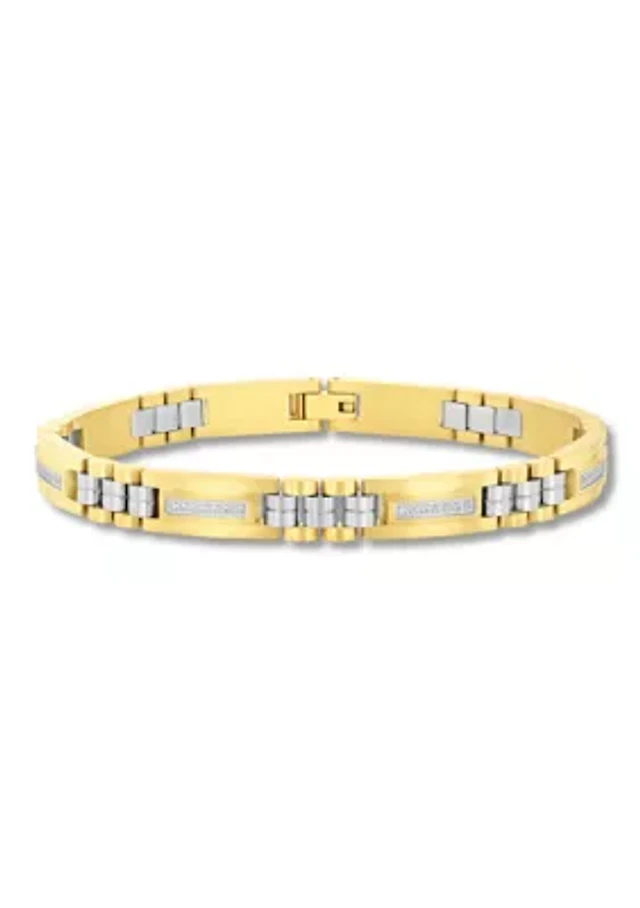 Mens 18K Yellow Gold & Stainless Steel Diamond-Accent Band