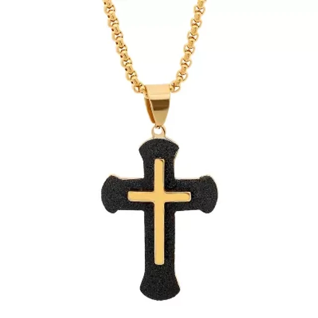 Mens Gold Ion Plated Stainless Steel Cross Pendant Necklace