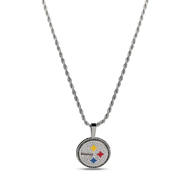GLD Pittsburgh Steelers 14K White Gold Logo Pendant & 20" Rope Chain
