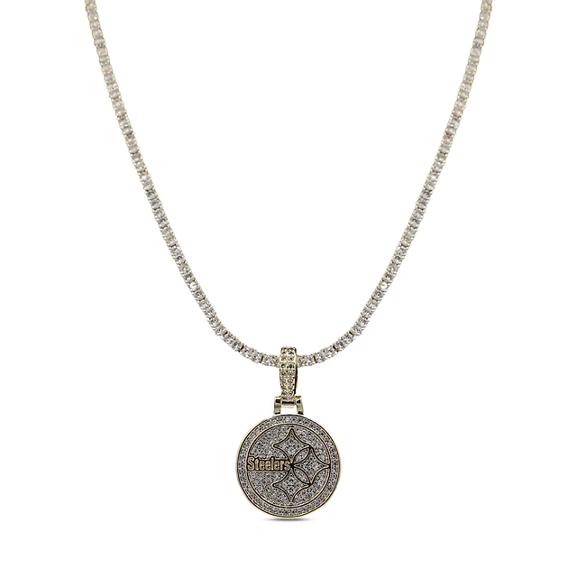 GLD Pittsburgh Steelers 14K White Gold Logo Pendant & 20" Tennis Chain