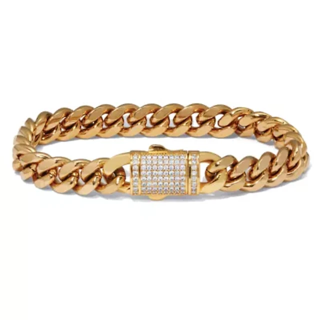 Steeltime Mens 18K Gold Over Stainless Steel 8 1/2 Inch Solid Cuban Hypoallergenic Chain Bracelet