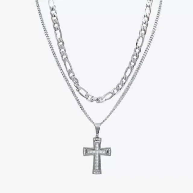 J.P. Army Men's Jewelry Stainless Steel 24 Inch Curb Cross Chain Necklace