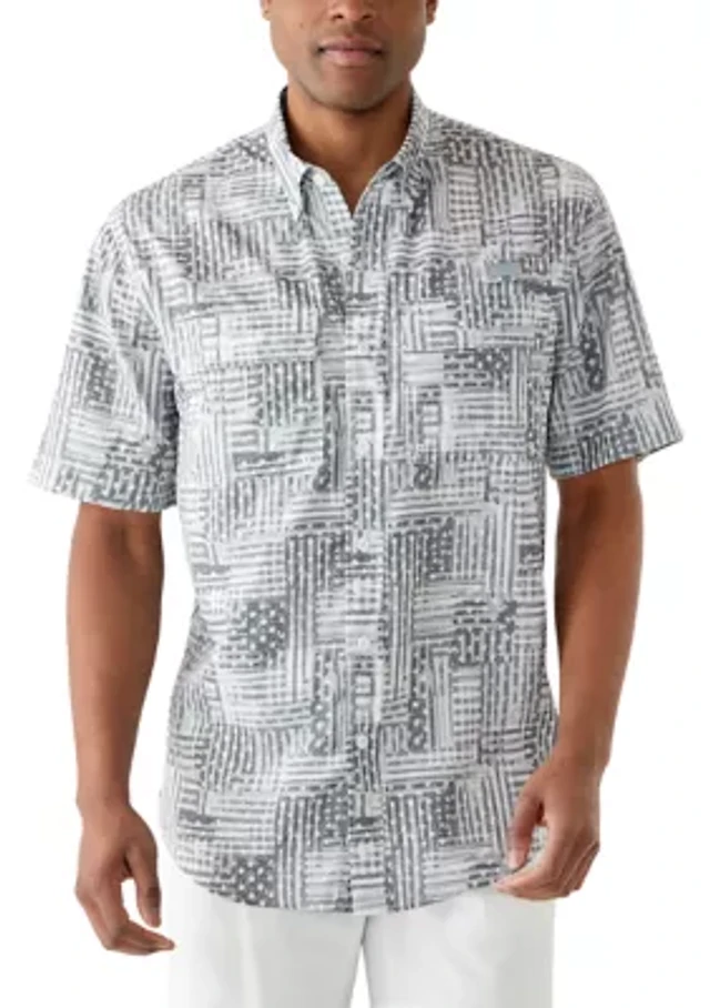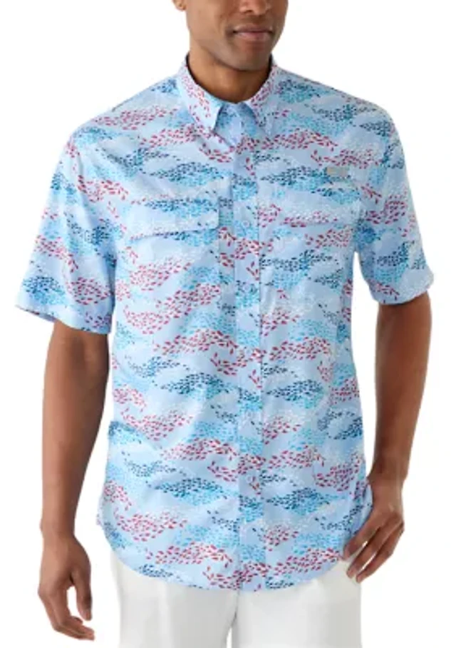 Men's Short Sleeve Tropical Print Fishing Shirt