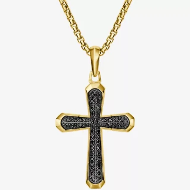 Bulova Mens Black 14K Gold Over Silver Cross 24 Inch Pendant Necklace