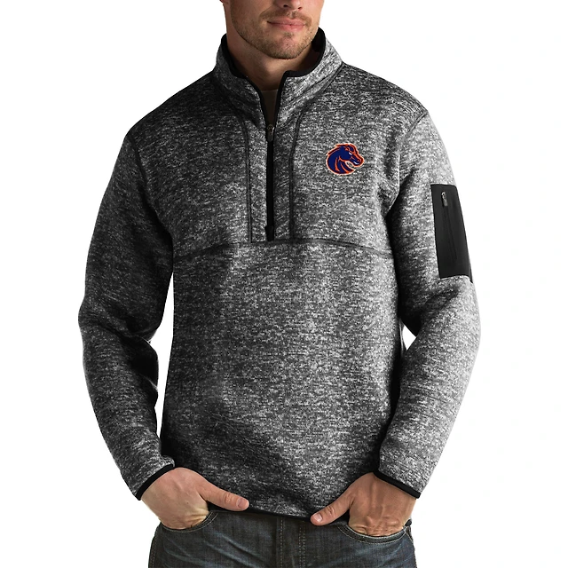 Men's Antigua Heather Black New England Patriots Fortune Big & Tall Quarter-Zip Pullover Jacket
