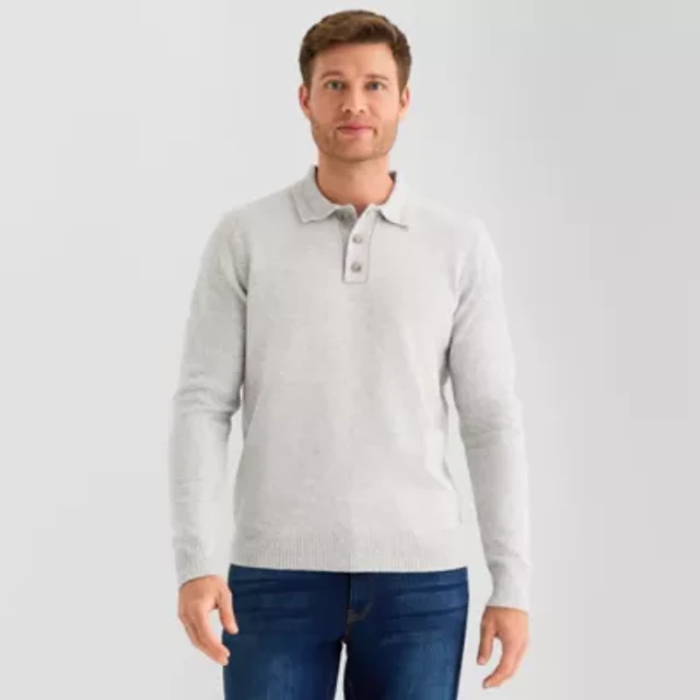 St. John's Bay Cozy Polo Mens Long Sleeve Pullover Sweater