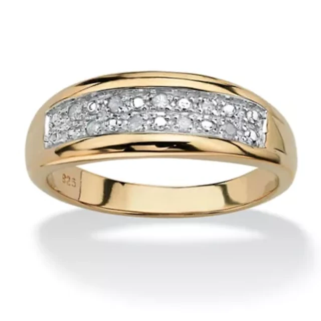 Men's Diamond Accent Two-Tone Gold-Plated Sterling Silver Diagonal Wedding Band