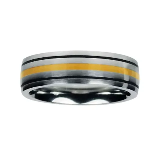 Mens Color-Enhanced Black Diamond-Accent IP Stainless Steel Wedding Band
