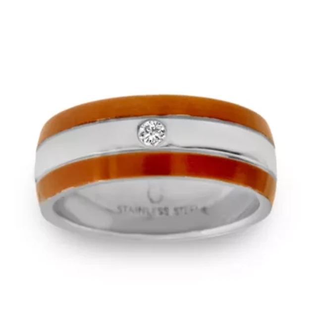 Sideways Mens 6MM Diamond Accent Natural White Stainless Steel Cross Wedding Band