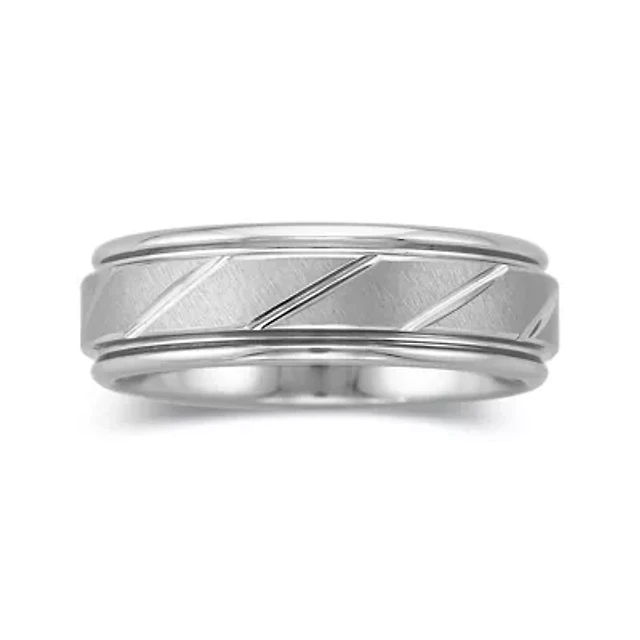 Now + Forever Men's Diamond Satin Finish Wedding Band 1/8 ct tw 10K White Gold