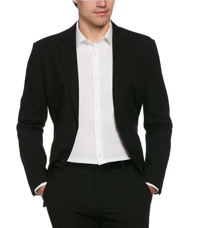 Classic Black Wool-Blend Washable Modern Tech Double Breasted Suit Jacket