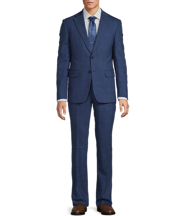 Hugo Boss Slim Fit Flat Front Plaid Patterned 2-Piece Suit