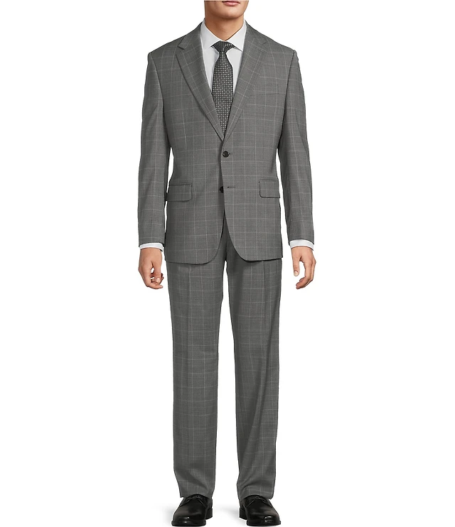 Hart Schaffner Marx Chicago Classic Fit Flat Front Plaid Print 2-Piece Suit