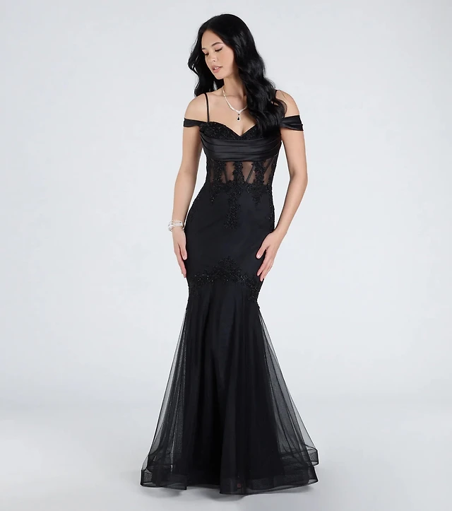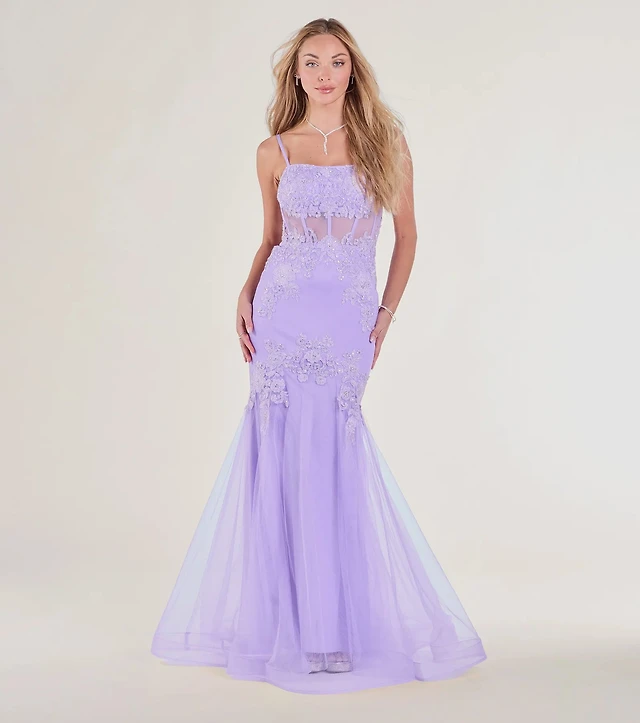 Cesca Corset Slit Mesh Formal Dress