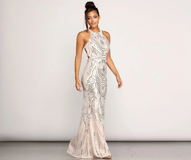Kianna Formal Sequin Scroll Dress