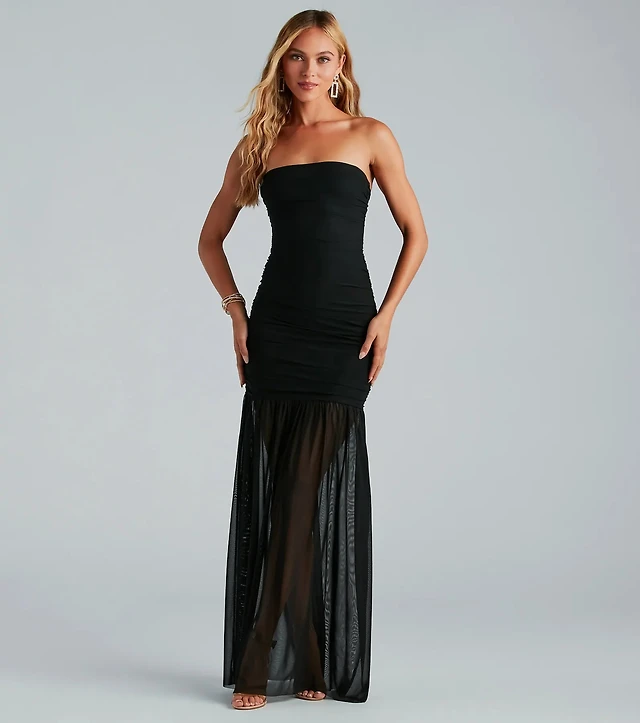 Shaliee Formal Mesh Strapless Mermaid Dress