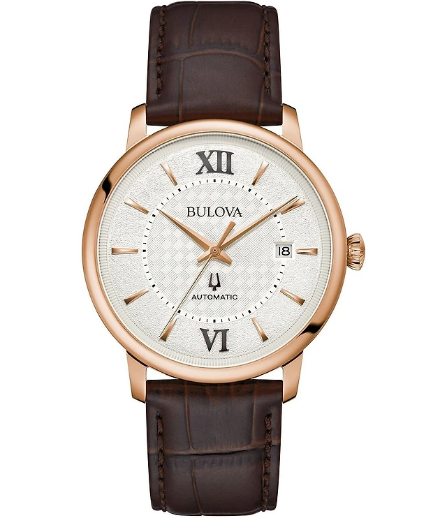 Bulova Men's Sinatra Automatic Black Leather Strap Watch