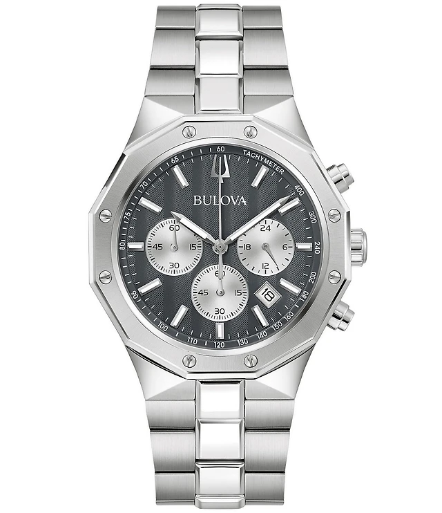 Men's Crystal Octava Silvertone Stainless Steel Bracelet Watch, 40 Millimeter