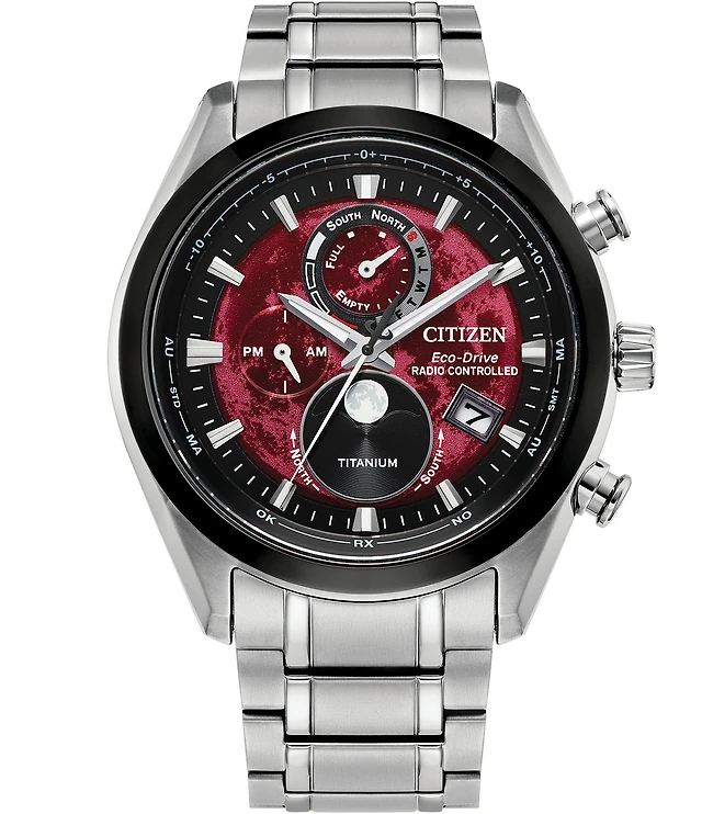 Citizen Men's Red Dial Eco-Drive Water Resistance Titanium Bracelet Watch