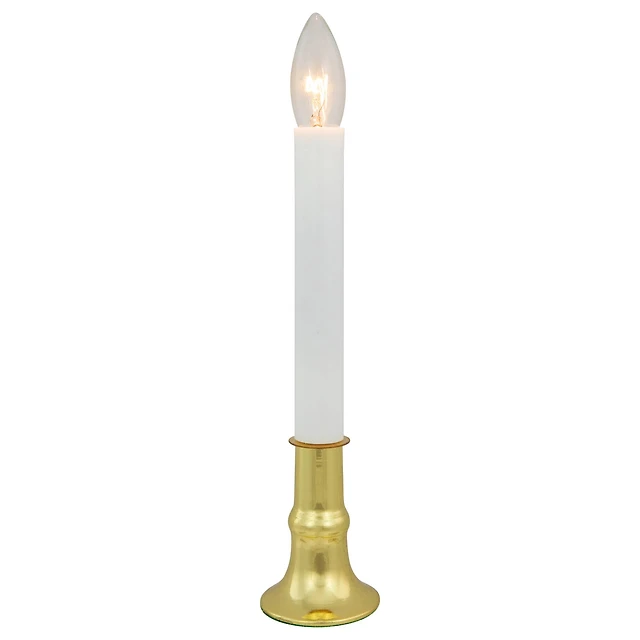 Single Light Window Candle with Timer - 9" - White and Gold - Set of 4