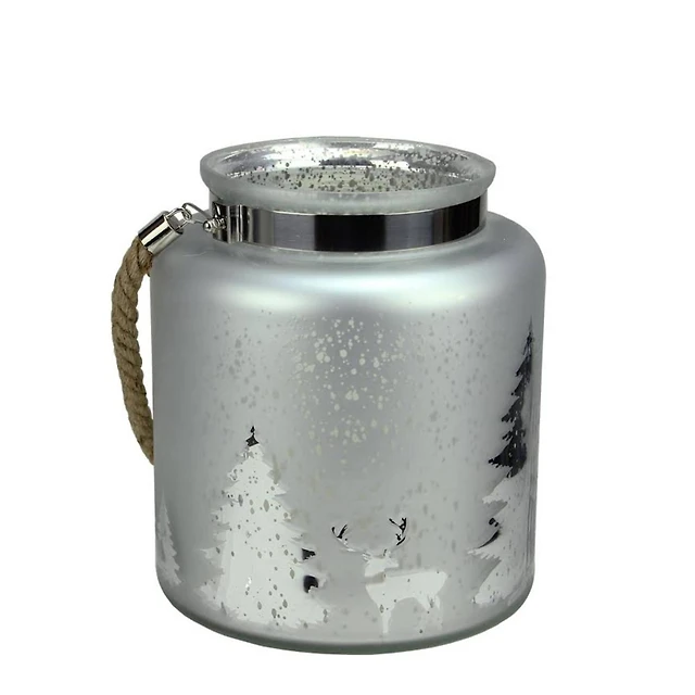 LED Snowy Woodland Glass Pillar Candles, Set of 3