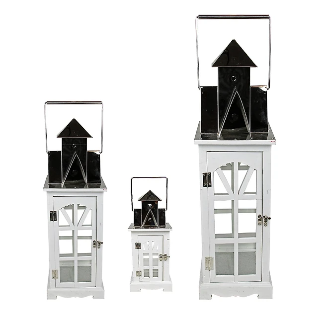 White Wood Vintage Candle Holder Lantern, 28" x 8" x 8"
