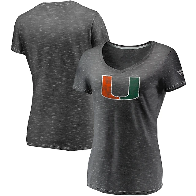 WEAR by Erin Andrews Miami Hurricanes Bleach Wash Splatter Cropped Notch Neck T-Shirt