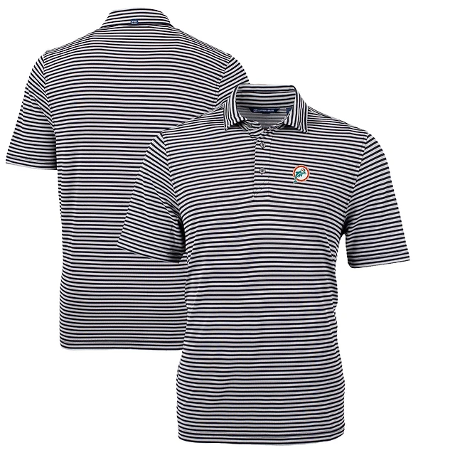 Men's Cutter & Buck Charcoal Miami Dolphins Throwback Logo Big & Tall Long Sleeve Stretch Oxford Button-Down Shirt