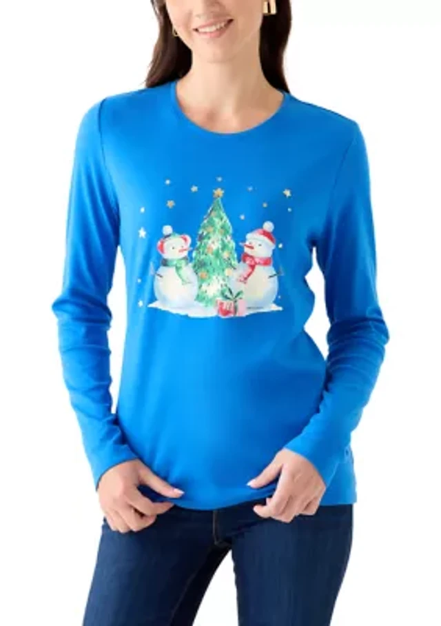 Women's Long Sleeve Christmas Postcard Graphic T-Shirt