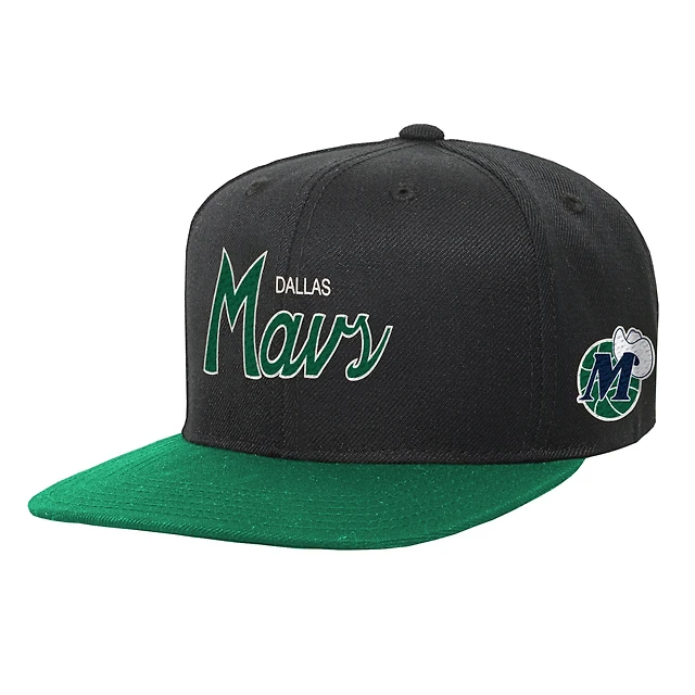 Youth Mitchell & Ness Black Dallas Mavericks Team Script Snapback Hat