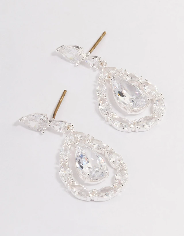 Silver Plated Cubic Zirconia Marquise Statement Drop Earrings