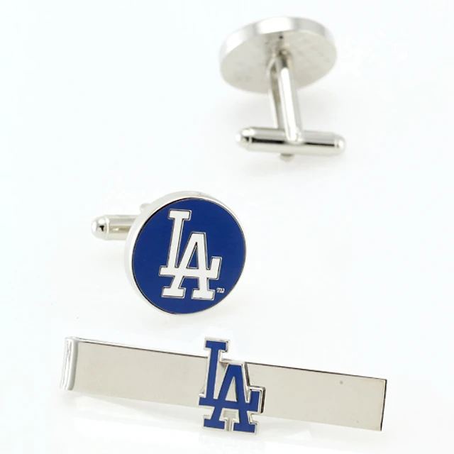 Los Angeles Dodgers Silvertone Team Logo Tie Clip & Cufflinks Set