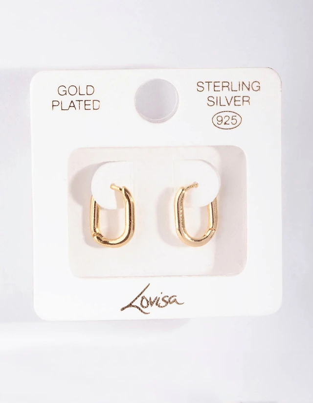 Gold Plated Sterling Silver Long Oval Huggie Earrings