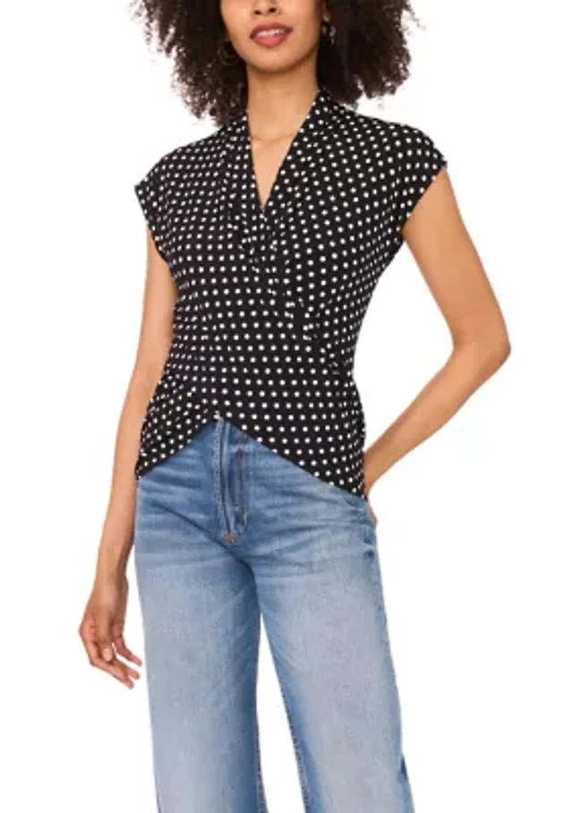 Petite Blouson Sleeve Mesh Mock Neck Printed Blouse
