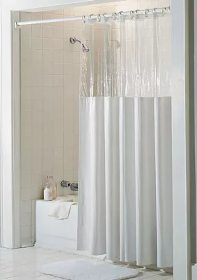 XL See Through Top Clear/White 10 Gauge Vinyl Bath Shower Curtain 84 x 72