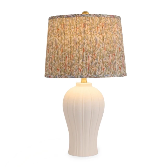 White Ceramic Table Lamp with 3D Flowers