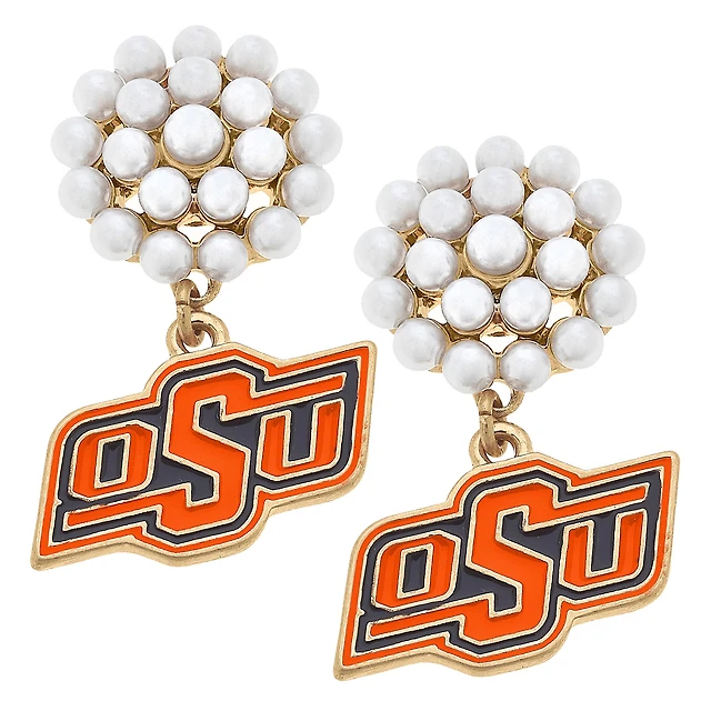 Women' CANVAS Style Oklahoma State Cowboys Pearl Cluster Enamel Drop Earrings