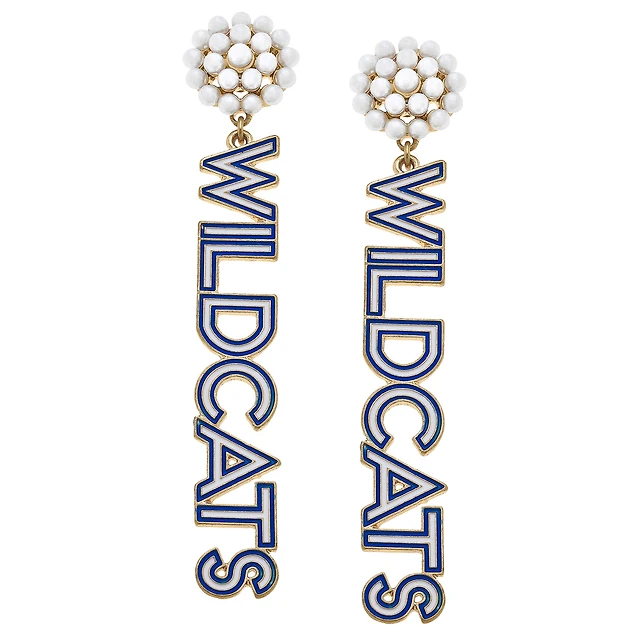 Women' CANVAS Style Kansas State Wildcats Pearl Cluster Outline Enamel Drop Earrings
