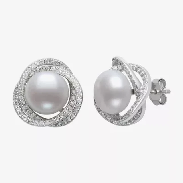 White Cultured Freshwater Pearl Sterling Silver Stud Earrings