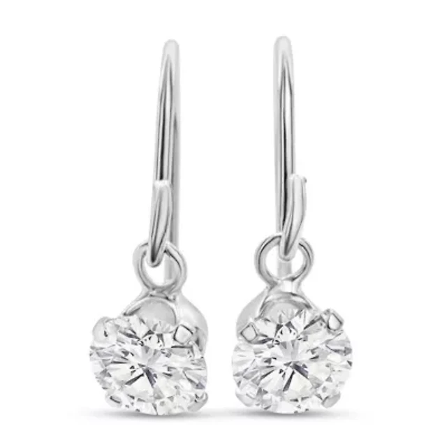 Cubic Zirconia Cluster Drop Earrings in Sterling Silver
