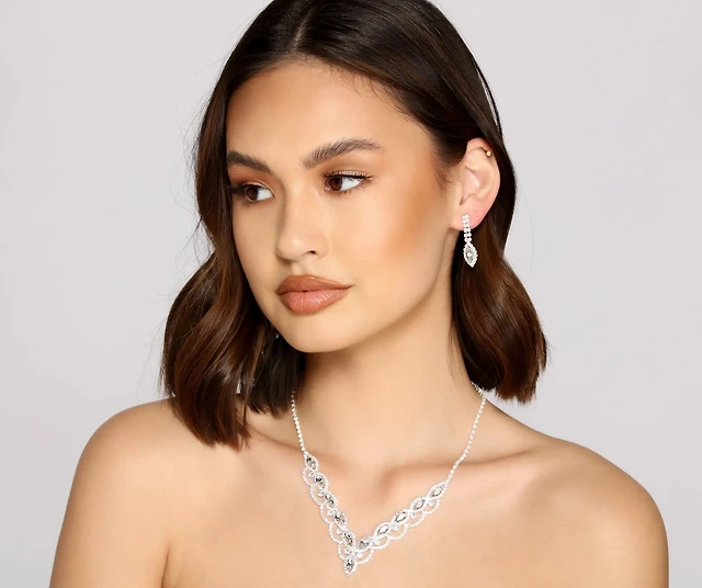 Dream Come True Rhinestone Collar And Duster Earring Set