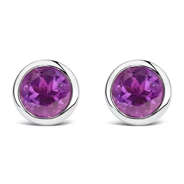 Halo Round Bezel-set Birthstone Fashion Stud Earrings (1 Stone)