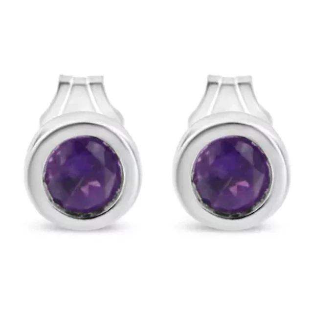 Child's Multi-Purple Crystal Girl Stud Earrings in Sterling Silver