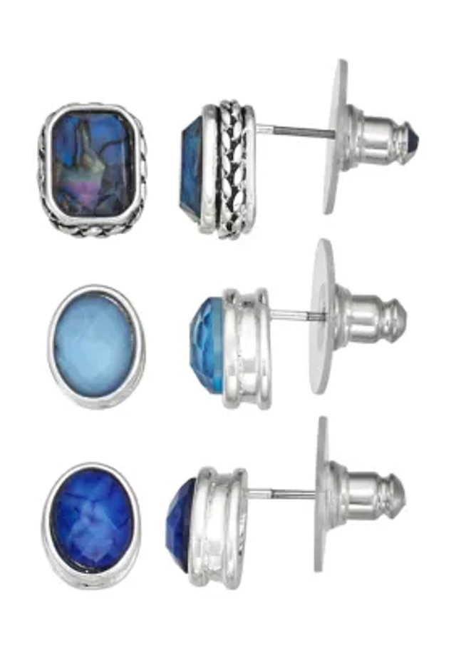 Lab Grown Multicolor Cubic Zirconia Multi Stud Earring Set